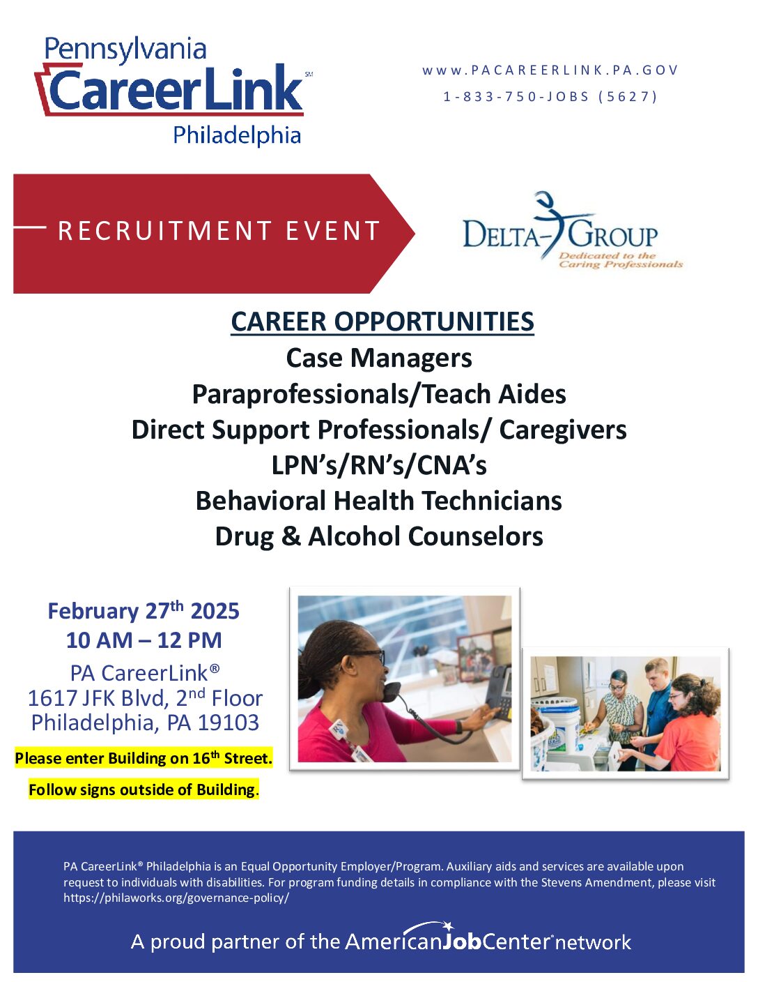 Location: PA CareerLink®, 1617 JFK Blvd, 2nd Floor, Philadelphia, PA 19103