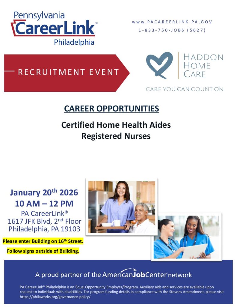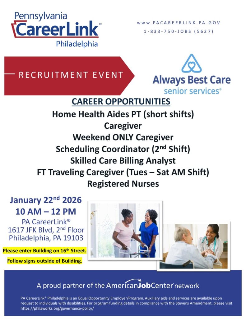 Location: PA CareerLink®, 1617 JFK Blvd, 2nd Floor, Philadelphia, PA 19103