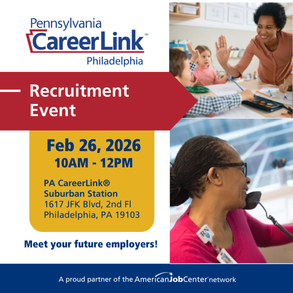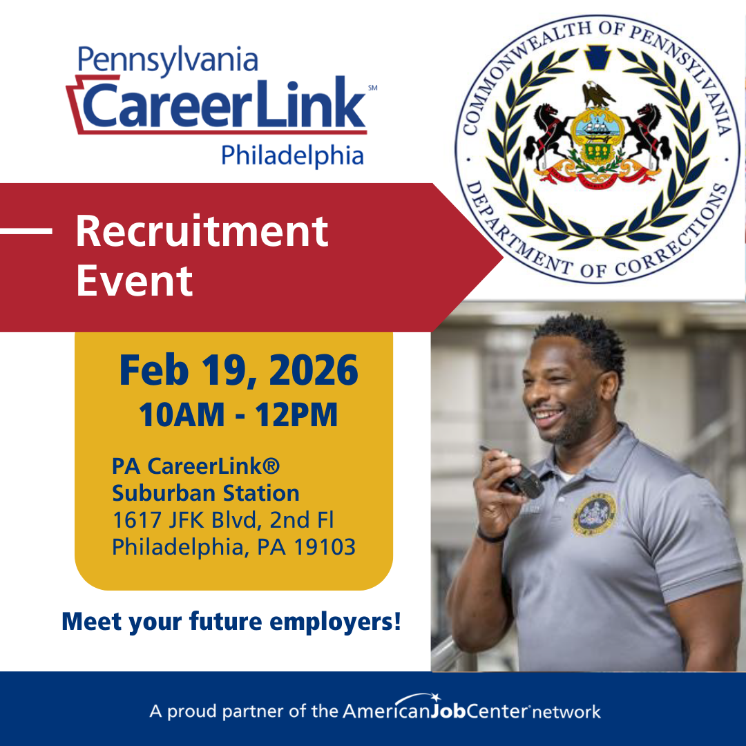 Location: PA CareerLink®, 1617 JFK Blvd, 2nd Floor, Philadelphia, PA 19103