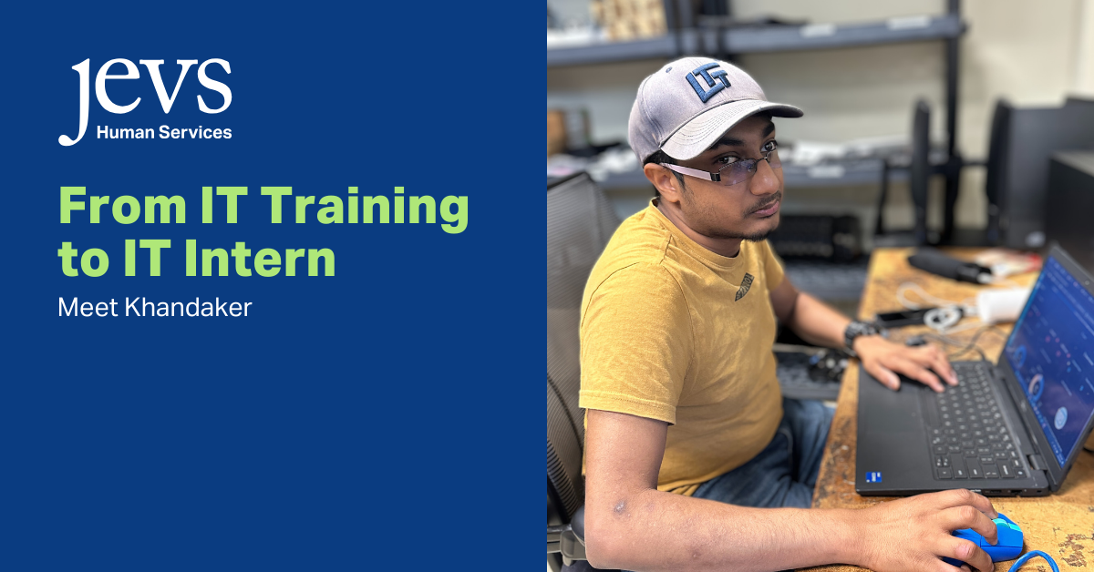 Khandaker completed the CompTia A+ certificate and credits the skills he learned to his current internship with JEVS in the Information Technology department. In this role, he works directly with JEVS staff to help with technical issues and getting new employees’ computers set up.