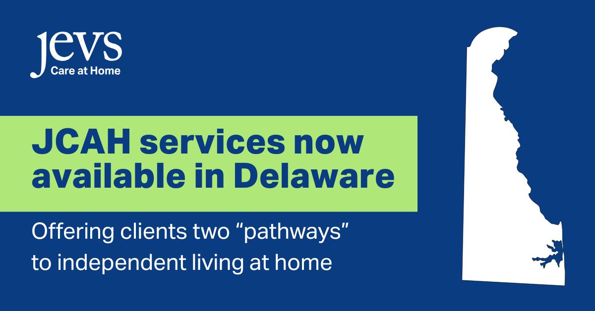 JEVS is excited to announce the roll-out of JEVS Care at Home (JCAH) services in Delaware. For the first time, JCAH’s award-winning non-medical home care services will be available to residents of the Diamond State.