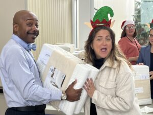JEVS Human Services staff celebrates the holidays by gathering for festive fun and giving back to the community!