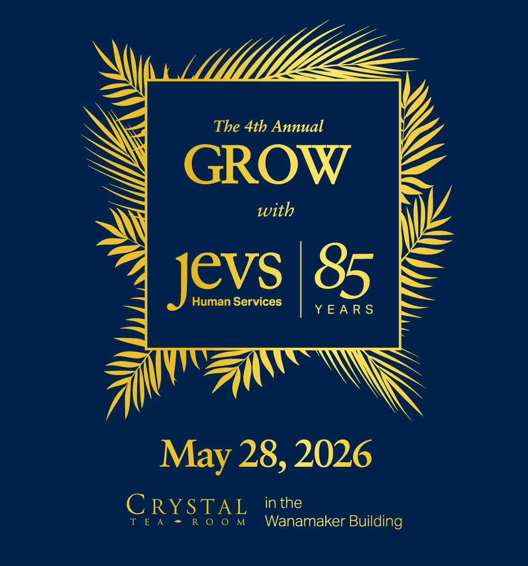 Mark your calendar for Grow with JEVS, returning on May 28, 2026, at the Crystal Tea Room, Wanamaker Building. Join us for a festive evening of connection and impact in honor of JEVS Human Services 85th year!
